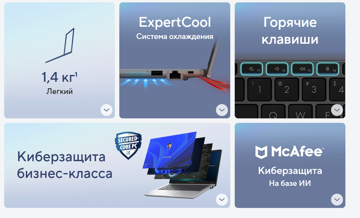 Ноутбук ExpertBook P1 – устройство стандарта «Secured-core PC» для Windows, поэтому он изначально обладает повышенным уровнем защиты от киберугроз. Это дает пользователям уверенность в том, что даже без ручной настройки параметров их данные будут оставаться в безопасности.